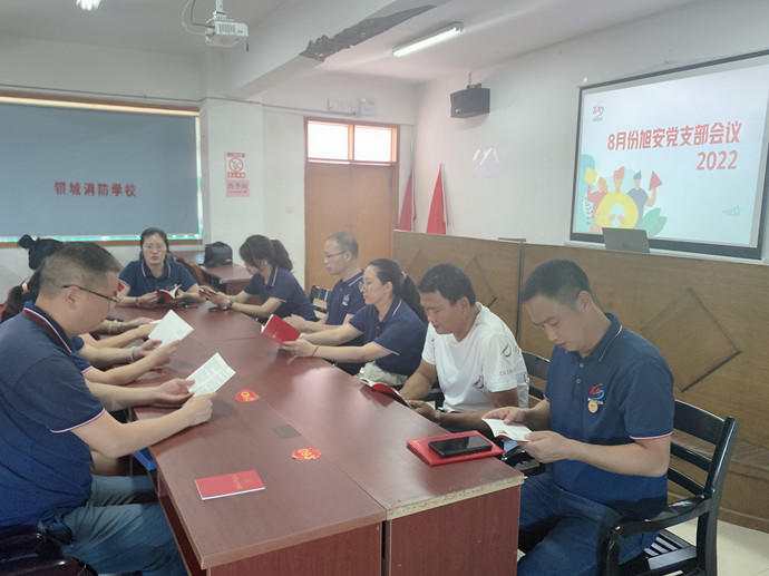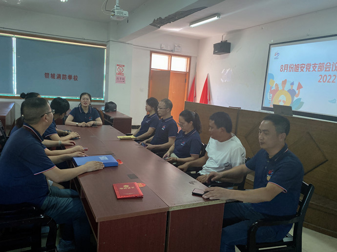 8月6日上午,湖南旭安消防工程有限公司召开党支部党员扩大会议。公司党员颜维燕同志、何政平同志、刘志军同志及公司入党积极分子徐介文同志等参加了会议。会议由党支部书记颜维燕同志主持。